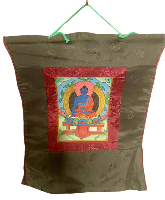 'Bhaisajyaguru' (Medicine Buddha) Painting with Brocade | Associated with Wellness and Healing