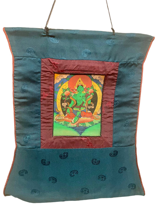 Green Tara Painting with Brocade | For Prosperity and Happiness